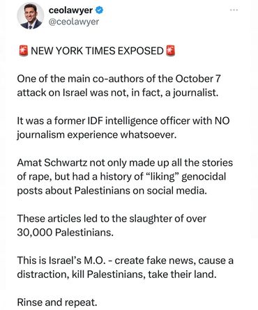 He has now been charged with a hate crime, for his recurring harassment of a street vendor. Prior to this, he was a senior official in the Obama administration, and a deputy director in the US state department's office of Israeli-Palestinian affairs. Just the level headed, un-biggotted, and un-biased guy you want for that job, right? More recently he was on the advisory board for ZAKA, the group responsible for spreading false claims about the October 7th attack.